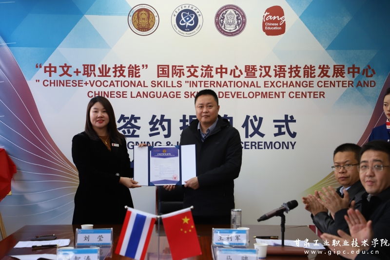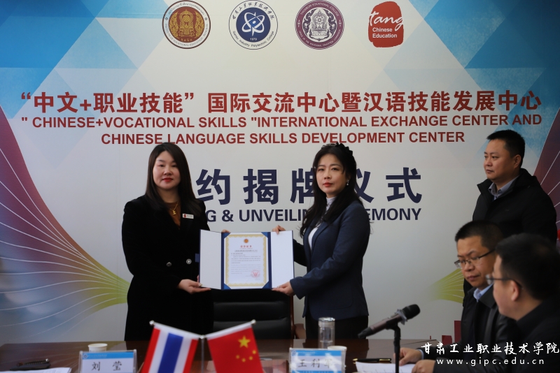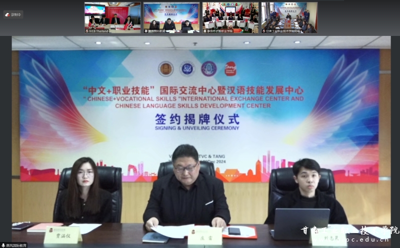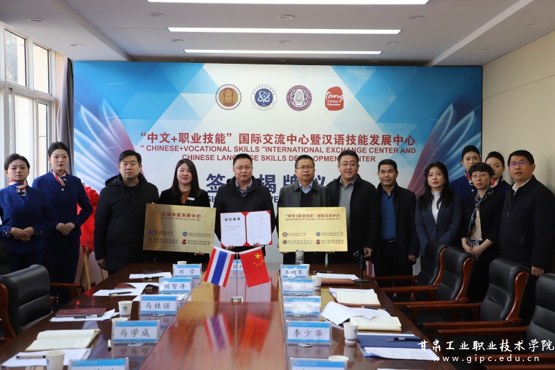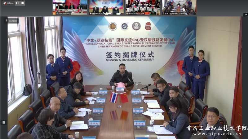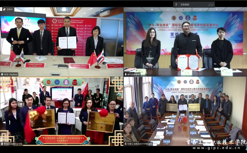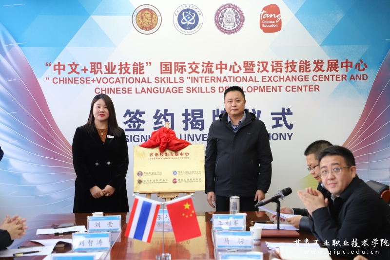 11月29日,甘肃工业职业技术学院与泰国曼谷职业教育中心、吞武里职业学院、北京唐风国际教育集团举行四方合作签约暨“中文+职业技能”国际交流中心、“汉语技能发展中心”揭牌仪式。